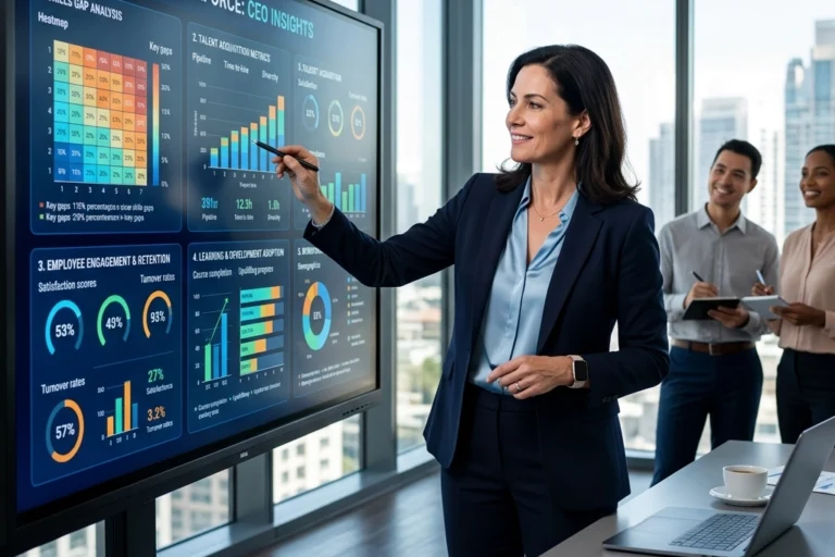 Most executive dashboards track the obvious metrics: revenue per employee, turnover rates, and cost-per-hire. But Fortune 100 companies have moved…