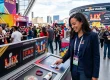 Caption: A fan interacting with a high-impact digital display using a smartphone.